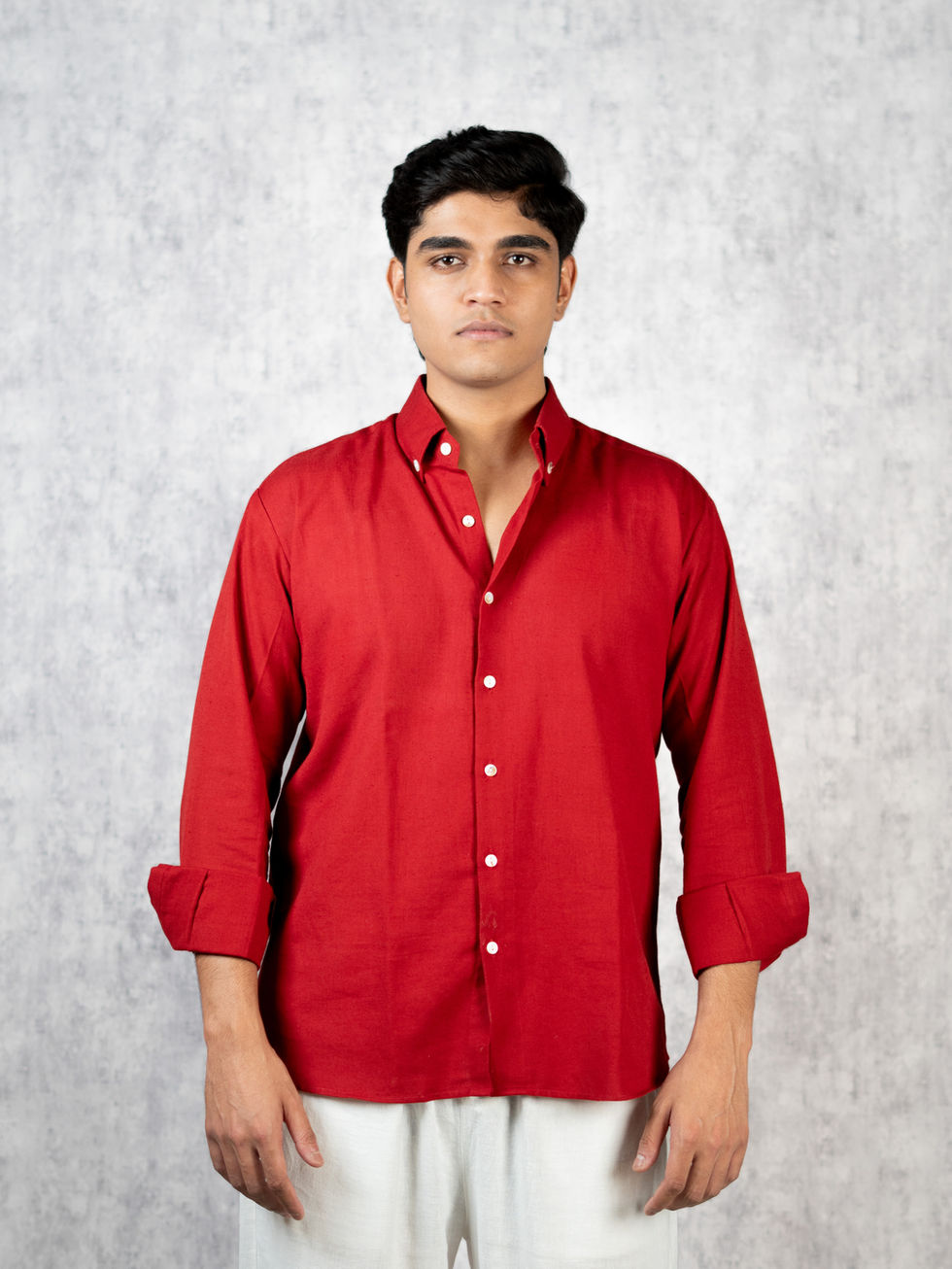 Our Rustic Red Cotton Linen Blend Full Sleeve Shirt effortlessly combines modern style with meticulous craftsmanship. Every element has been thoughtfully designed, from the striking marble-look buttons that elevate the shirt’s appeal to the carefully adjusted collar length, creating a refined and contemporary silhouette. The cuff size has been expertly considered to ensure both comfort and sophistication. This shirt is a true reflection of our dedication to fine detailing, making it not just a garment, but a statement of quality and thoughtful design.